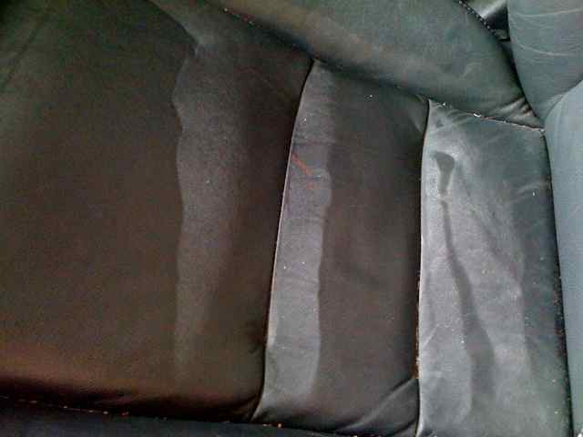 day where I left a bottle of water laying in the seat. Hard like plastic where the water laid. My guess is because I left the sunroof open on a sunny summer day, maybe the reflection off the water? Very disappointing.