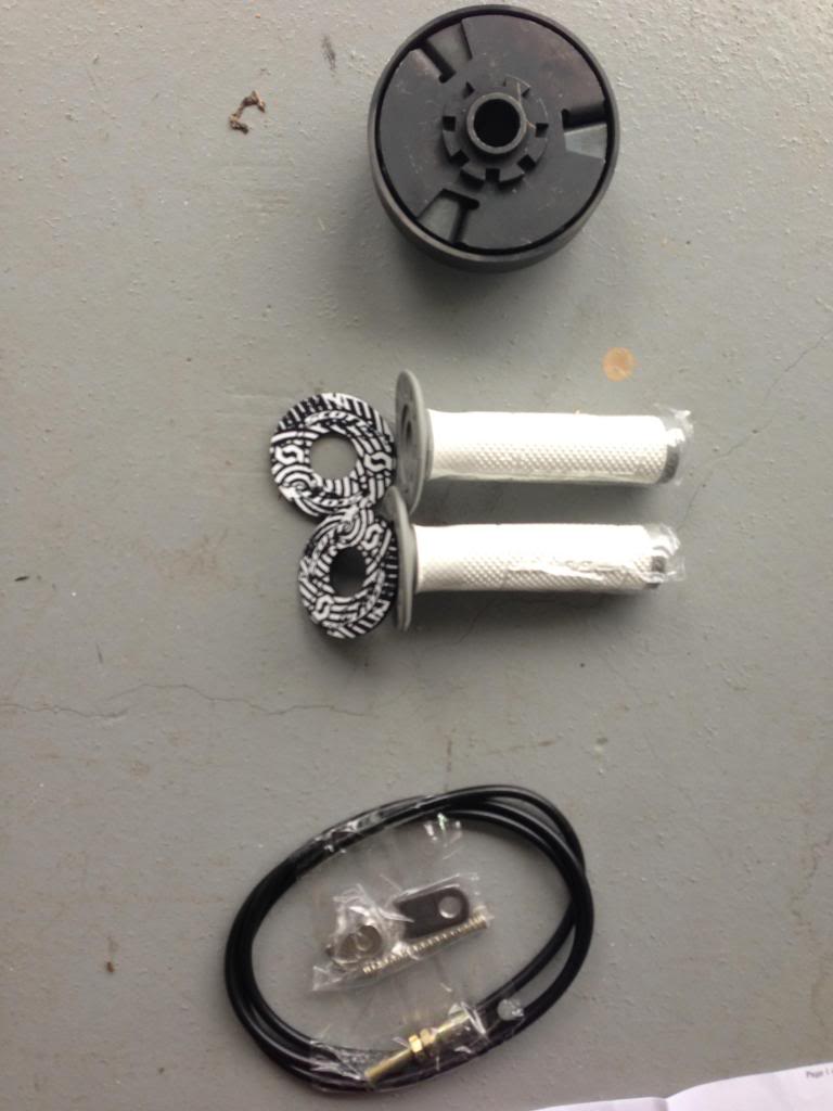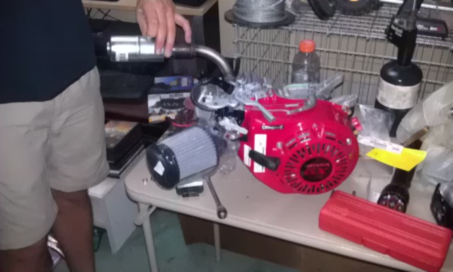 i bought a honda gx160 engine, a centrifugal 10 tooth clutch, full rear axle assembly, clutch line, throttle cable, throttle linkage kit, handlebars, etc.