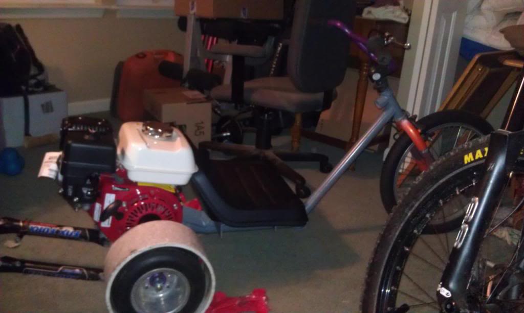 soooo im starting a new project. i bought a drifting trike from a friend of mine and im gonna add an engine to it and make it a badass drifter lol