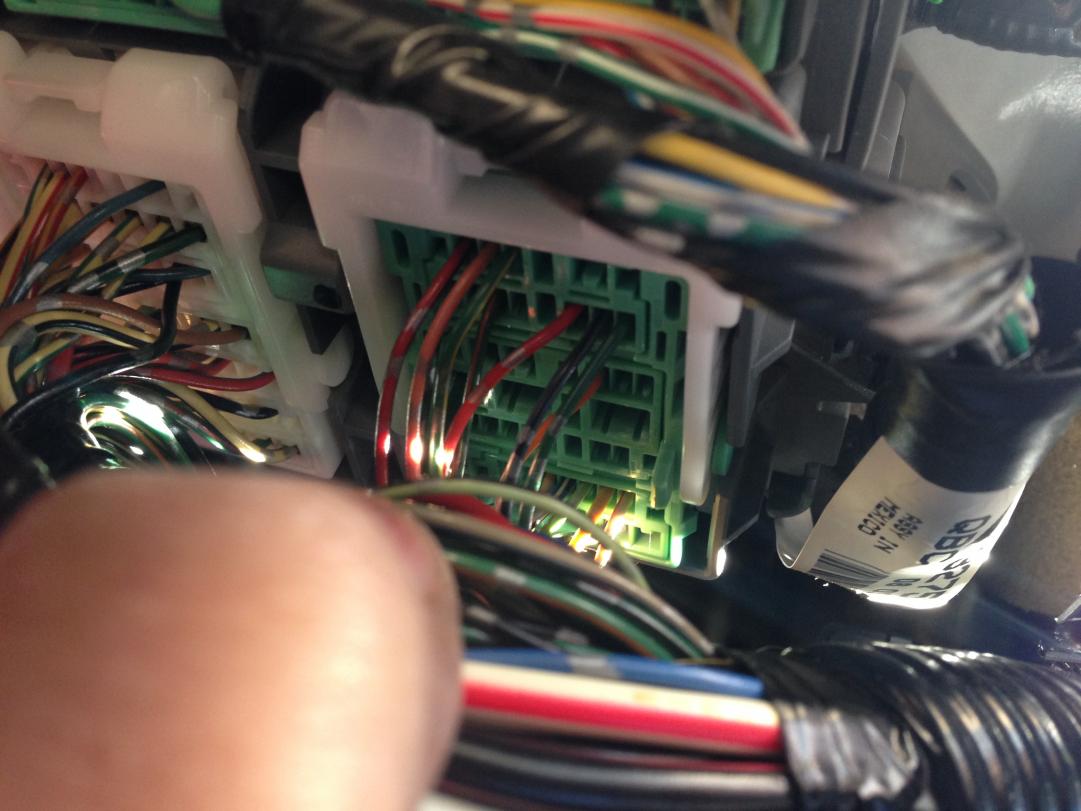 Hi Redbull. Today i tried to connect as per ur instructions but it looks like i m doing something wrong. I couldnt find a green/red wire on the lt green connector, instead it was on a white connector (top right side). So I connected a multimeter from a hot point to the green/red wire on white connector. The reading was always high, doesnt matter the state of the dome lights. Also, when I tried to connect a bulb between the hot point to the green/red wire, i could hear a relay getting active but the bulb didnt glow.