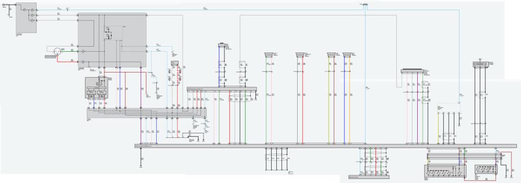 Schematic showing the premium touchscreen HU reverse wire (through relay). HU receives a +12V switched signal when in reverse.