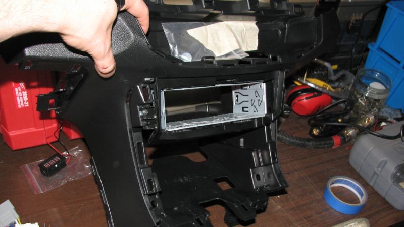 I destroyed the factory pocket to make this mount work. You will need to buy a replacement pocket if you want to return the car to stock. I cut out part of the rear of the plastic dash pieces to gain depth for cabling. Making the mount stick out farther could save some cutting but wouldn't look as nice. If you attempt this, you do so at your own risk and no one on this forum or myself is responsible for any of your actions or damage you may cause.