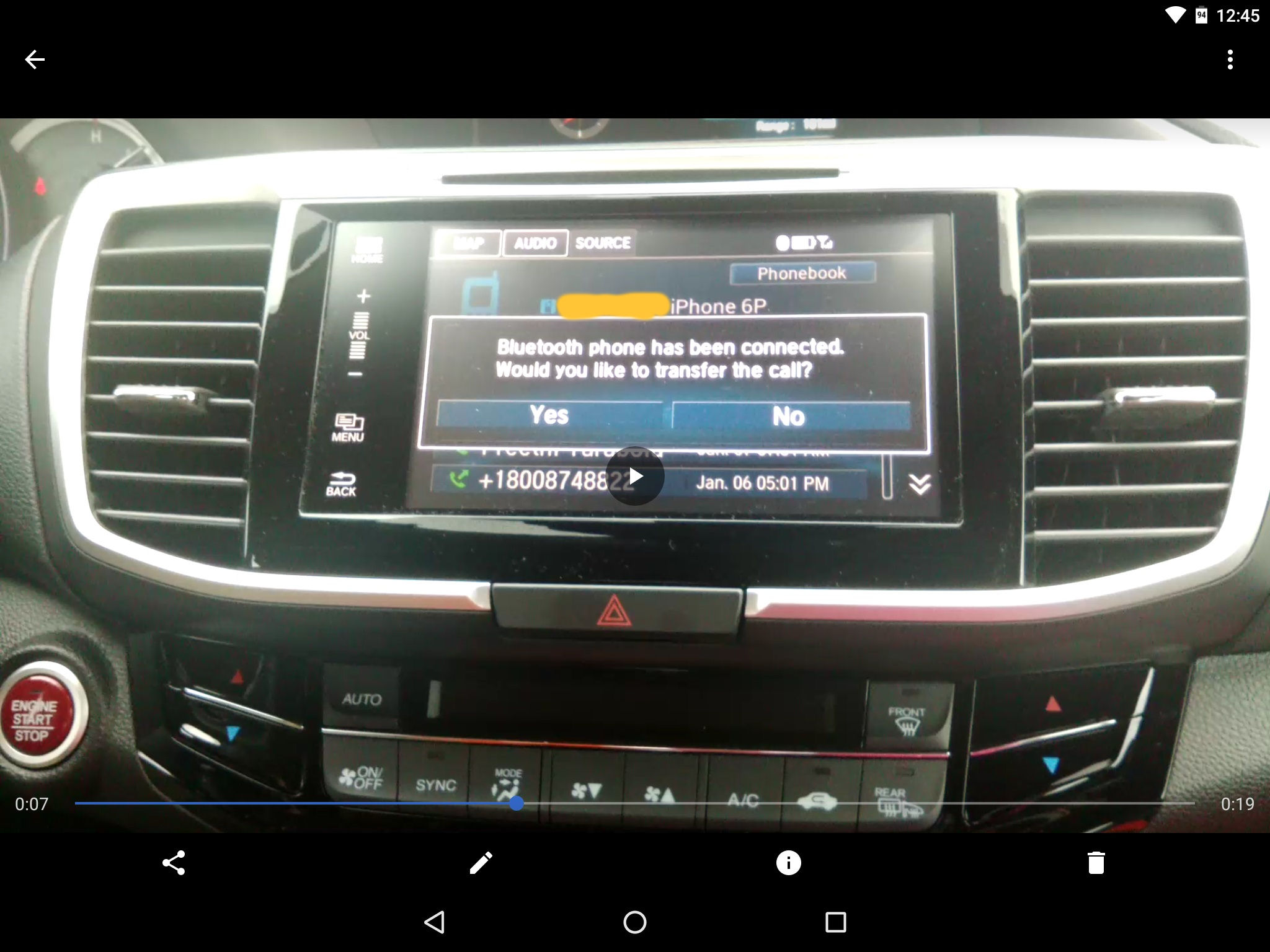 I have purchased 2016 Accord EXL recently. I am having issue transferring Hangout calls from IPhone 6 Plus to Car. After placing call from Hangout and try to transfer call to Car, system prompting a message "Bluetooth phone has been connected. Would you like to transfer the call?" with Yes/No option, but message disappearing quickly before making the choice (I have to recorded the video to see the message).