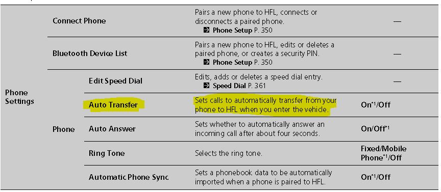 I have compared the Owners Manual for LX (Page 312) and EXL (Page 336) under Phone Settings, Auto Transfer option is not available in EXL model.