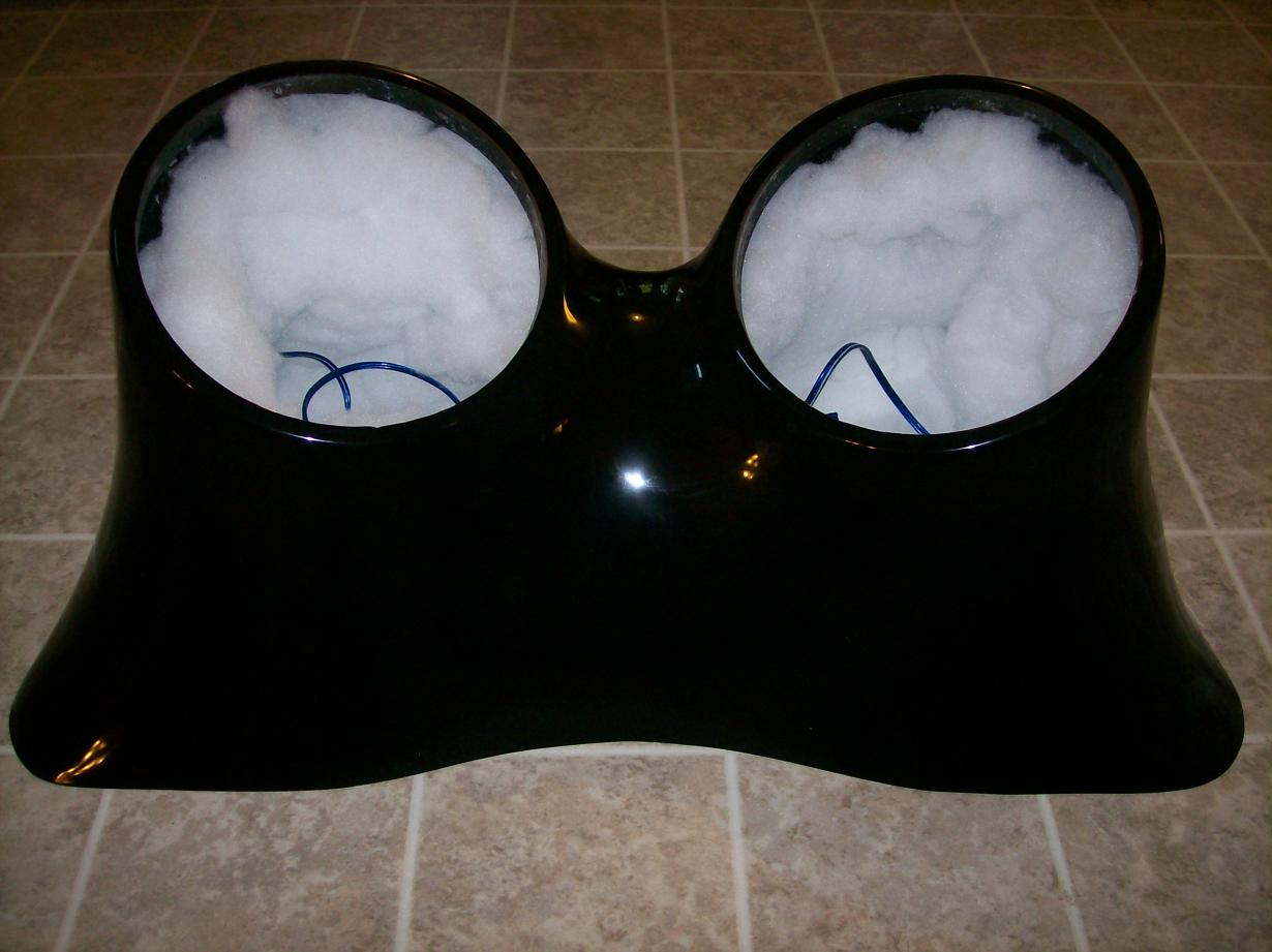 Finally finished my mold and here is a picture of the universal box I mentioned a while back. It holds 2 twelve inch subs. It also has a center divider making each side a seperate box,all wood is 3/4 mdf. Its not painted its polished black gelcoat! Much tougher than paint. I also gelcoated the bottom and brushed resin on all wooden areas making it weather proof and great for use on botas or outside. The terminals are gold plated and on the bottom. Wood rings are glassed in to screw the woofers into. The nice thing is the mdf absorbs resin making it very tough stuff. The polyfill helps it sound nice and dead. About 1.3 cubic feet per side. Also heres the original !998 - 2002 accord stealth box also.