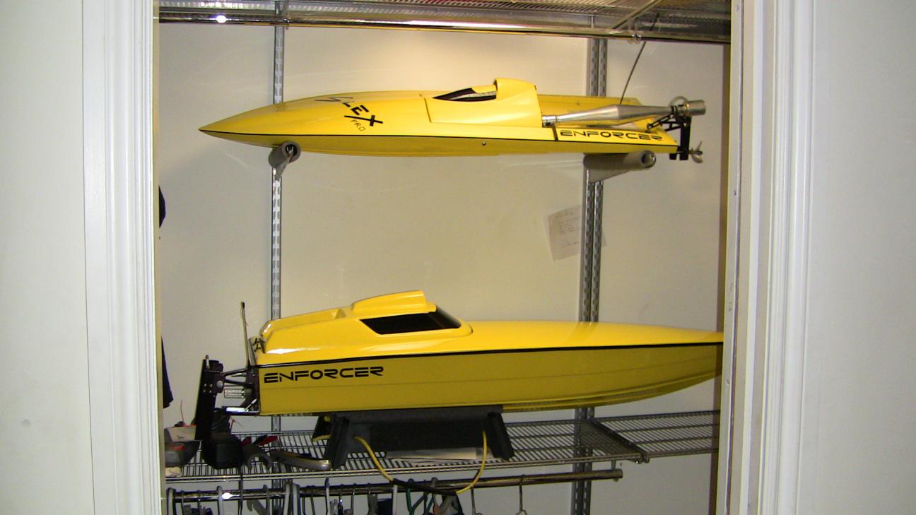 Sorry if I'm rambling I can talk about RC boats all day. There are quite a few guys who have their own molds and sell hulls locally. They don't make much profit, it's more of a hobby for them. But if your were to strike a deal with one of these overseas manufacturers, it could be your sole source of income. Well I'll leave you with a shot of my two monos so you can see the difference between a deep V and a race mono. I can get a shot of ride surface if you want. The sharp V goes right back to the transom, and the last 8" or so of the keel is flat about 2" wide at the widest point. At speed this is the only surface that is touching the water, trimmed right you will only have the prop in the water.