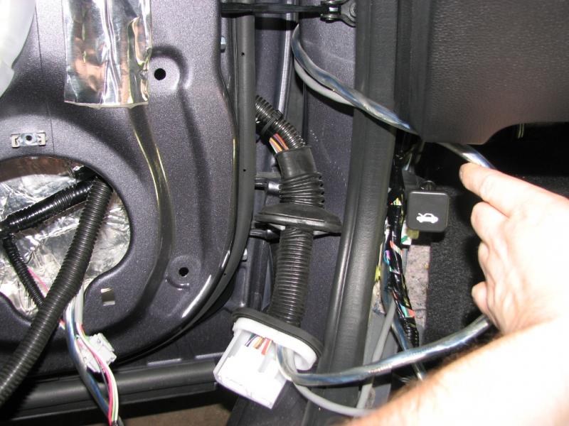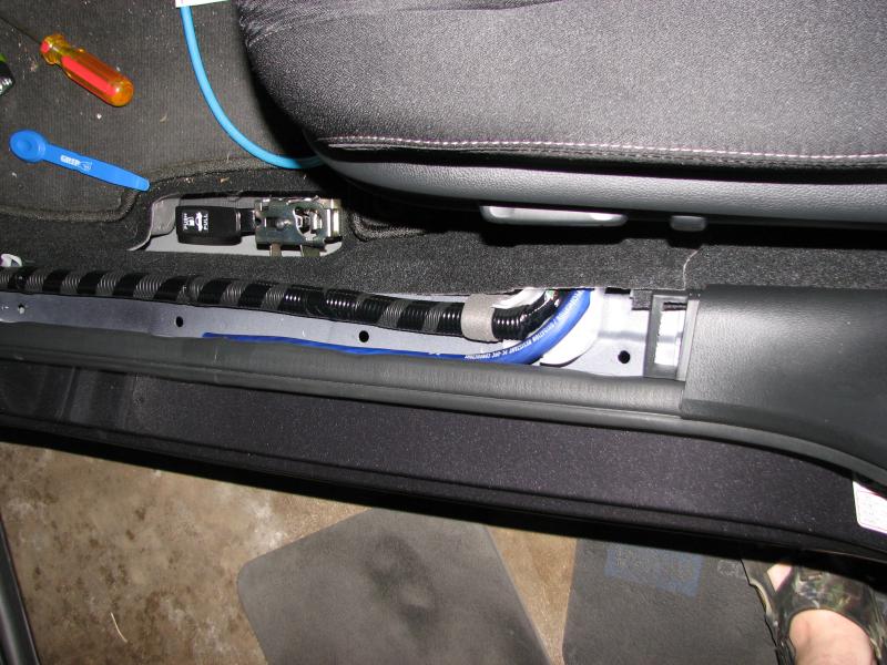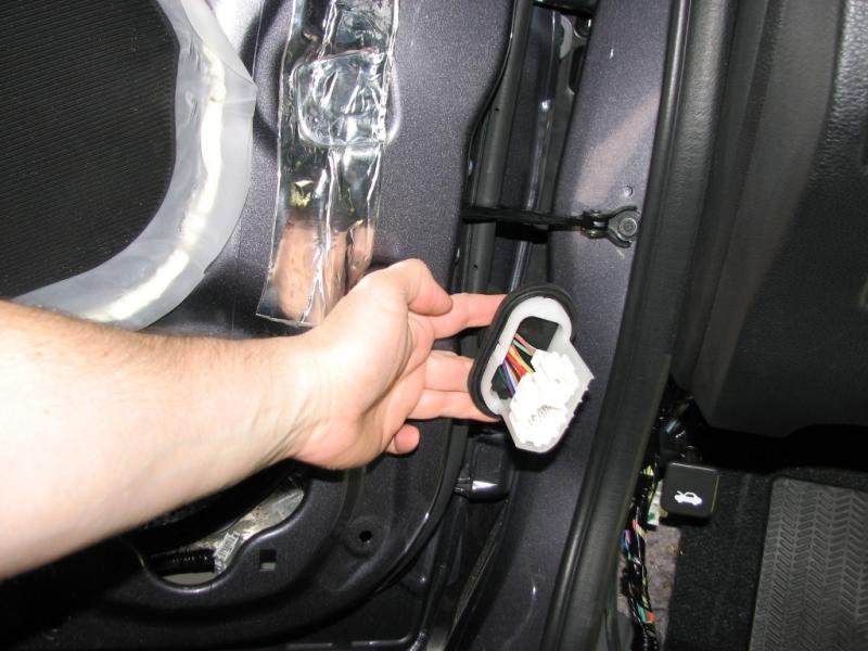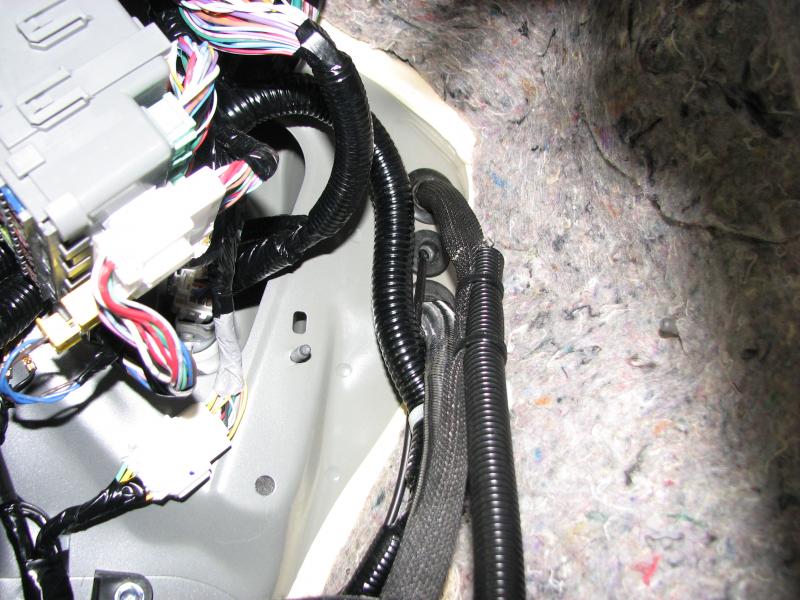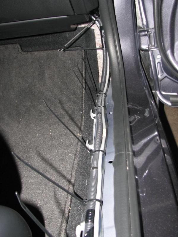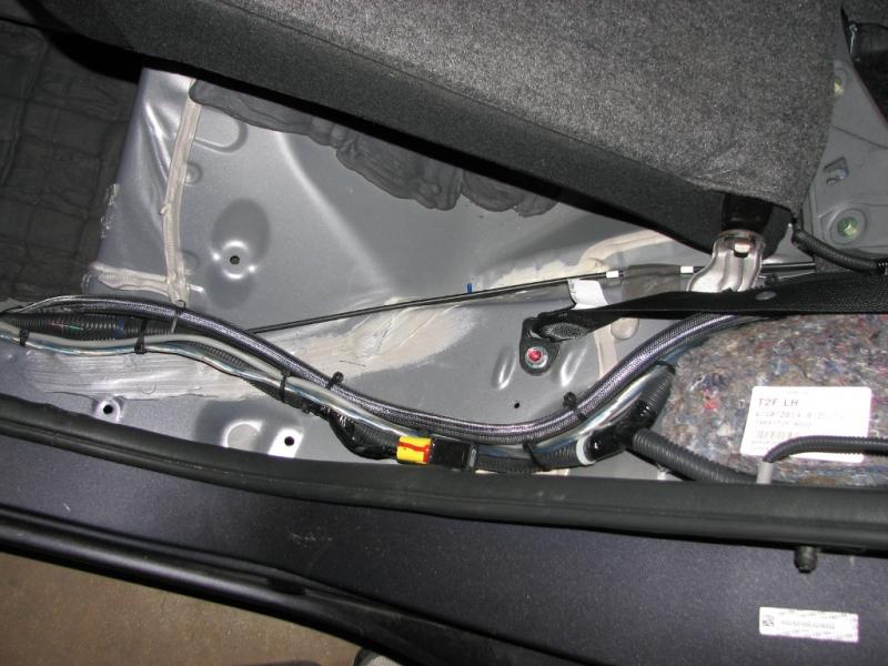same on passenger. inside the door the wiring is in split loom and tied to factory wiring every 4" or so.