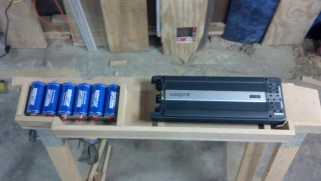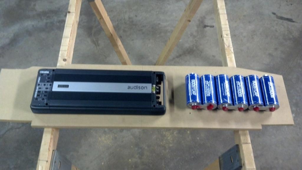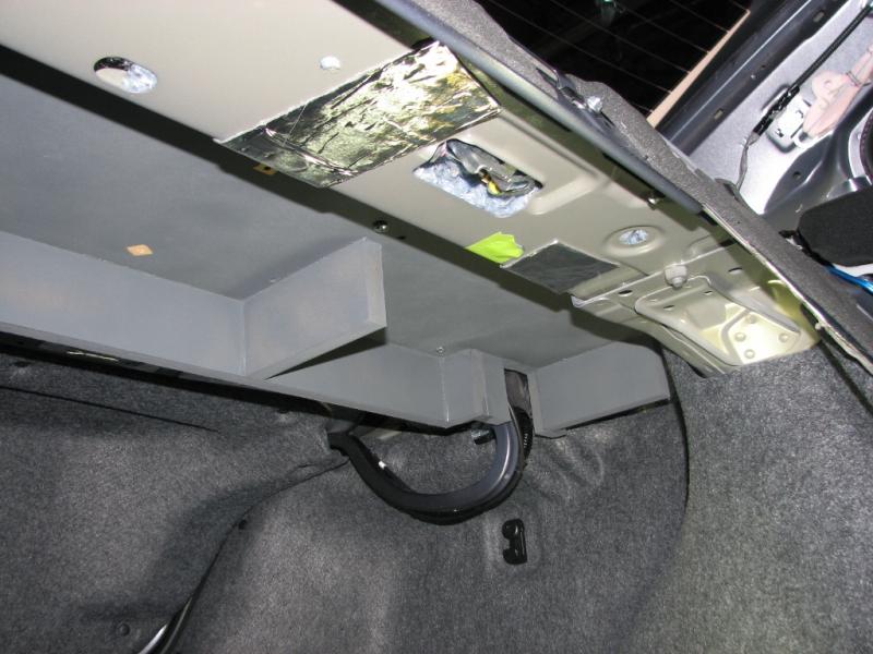 amp rack is 3/4" MDF because I wanted to add rigidity and density to the rear deck to counteract the drum head effect that the large, thin factory deck has.
