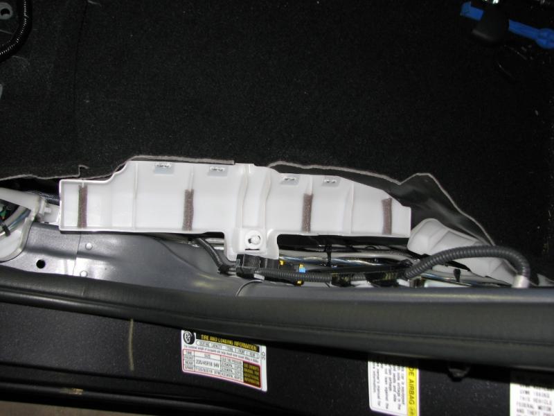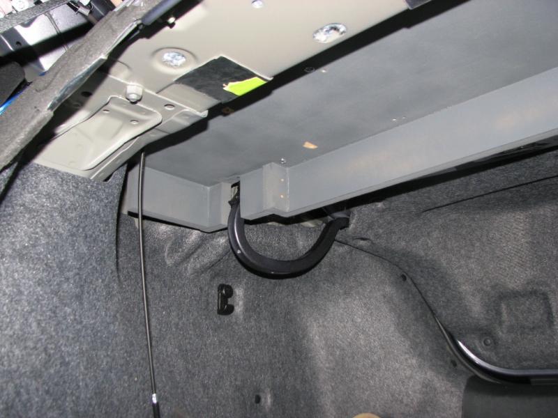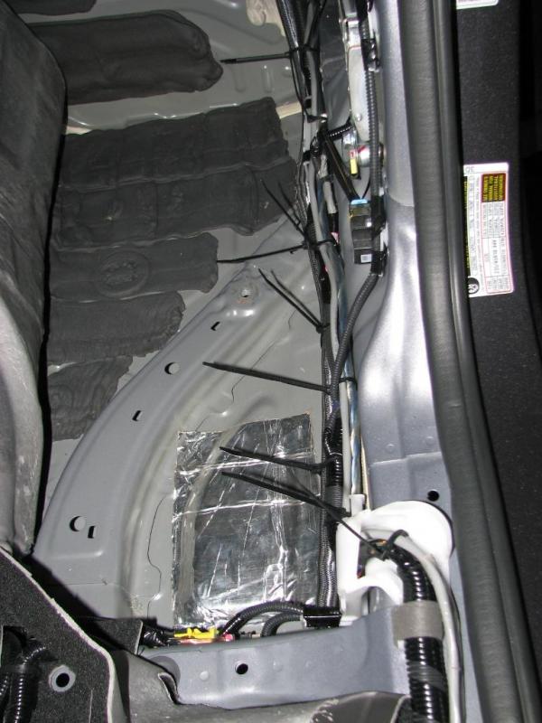 passenger side with rack mounted (viewed from inside cabin with rear seat down) - RCA's and speaker wires will be here.