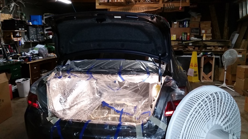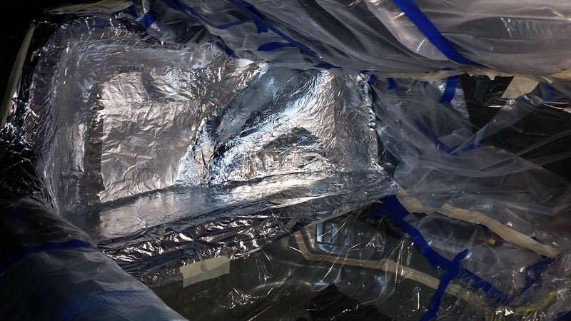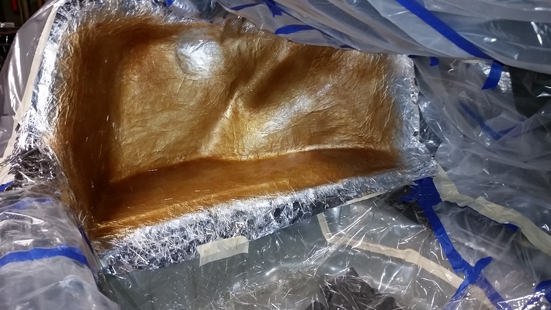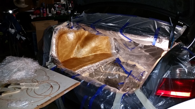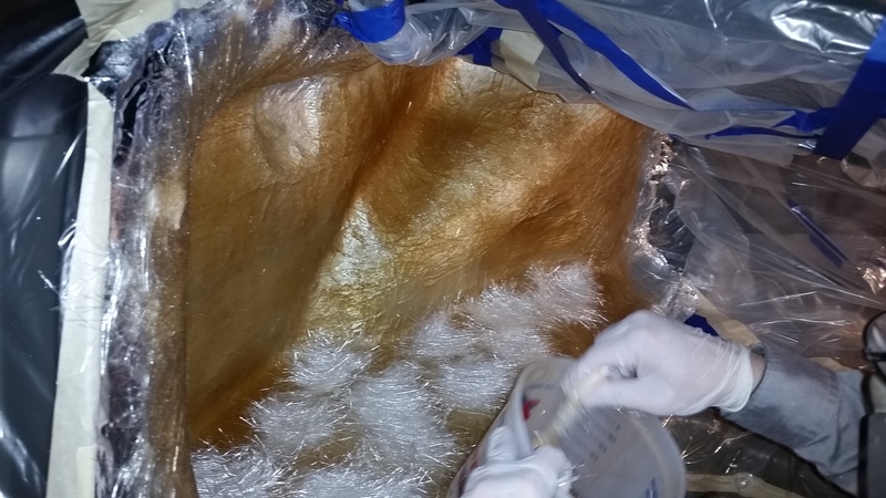 A previous evening included more taping, plastic, foil, and a lot of chopped mat and resin.