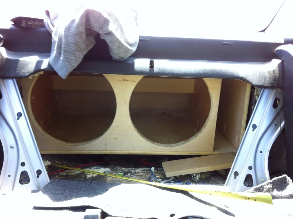 I think it is all coming out monday. New box, more air space, more port area. New amp placement, possibly another battery. Then the deck then the doors. That is the plan. I will keep yall updated.