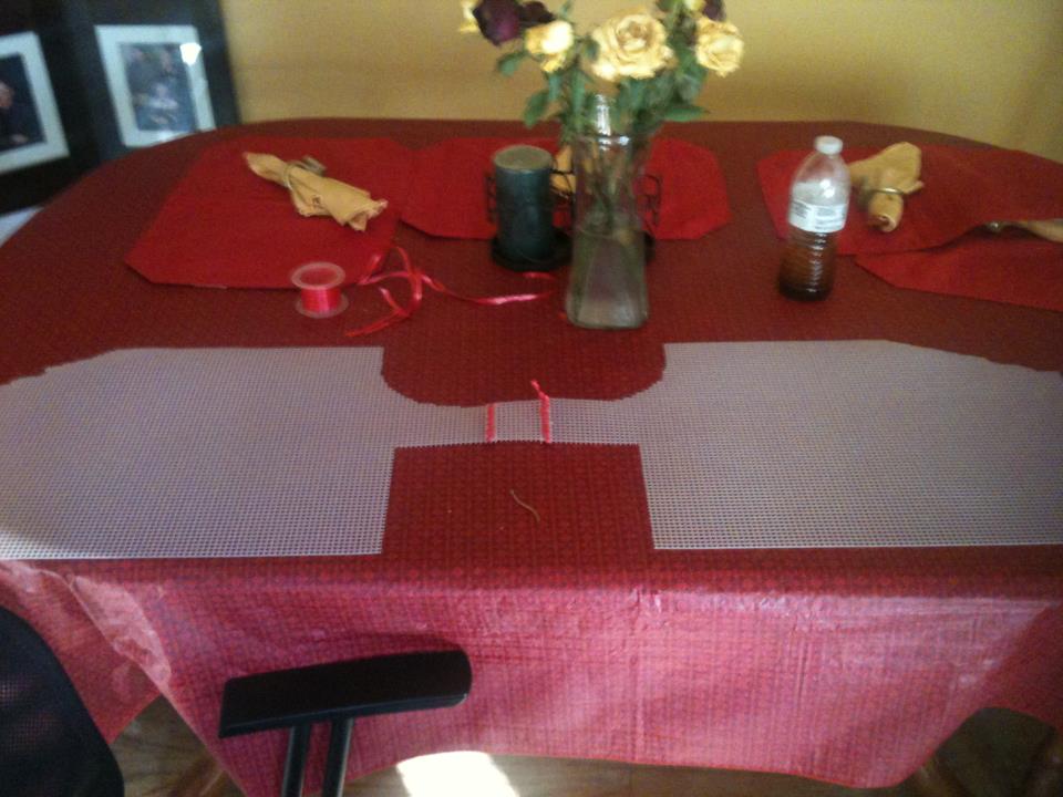 I bought this stuff called plastic canvas to make the stensil. It worked reall well. It was flexible enough that I could get accurate shaping around the stuff on my rear deck but solid enough that when I lay it out on the mdf to cut it should be the correct size and not stretch or distort shape.