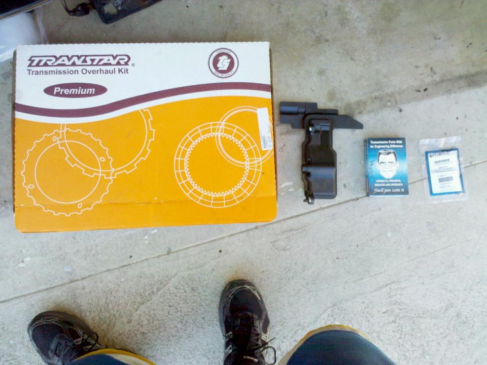 first i got the tranny overhaul kit for my model, then the tranny filter, and the tc control valve kit. absolutely necessary if you want to have a long lasting tranny, since the stock tc control valve is usually the culprit in burned torque converters.