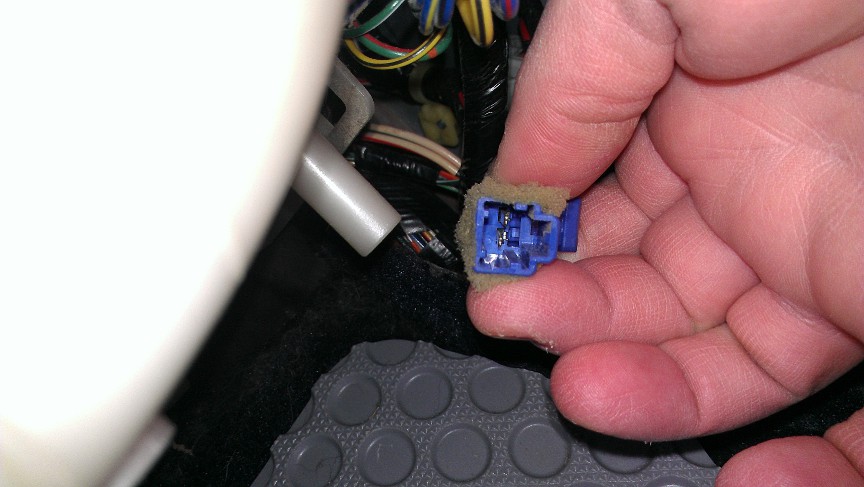 I looked and found a blue plug (the only one I can see) on the passenger side side panel...but it doesn't look like I can jump this plug with the connection...I attached some pictures to give you a look.