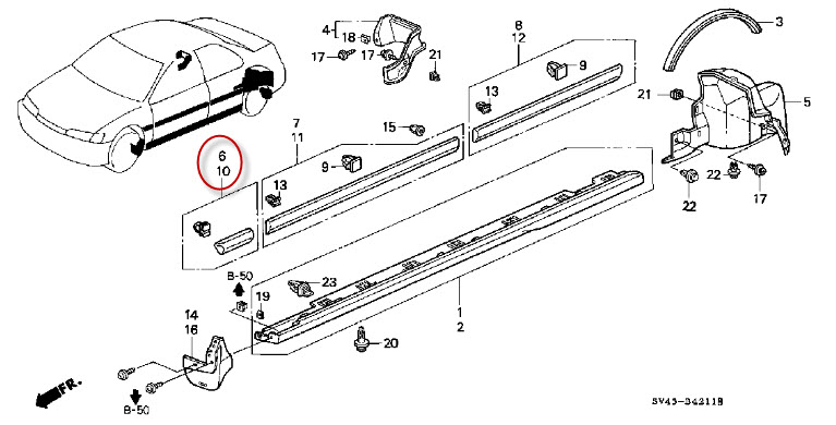 The trim piece is the fender protector. They usually come unpainted. You can order it from an internet Honda dealer, go the dealer, try a salvage yard for a painted one.