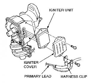 If you have an external coil, there are 4-pin connectors. If you look at coil connector the four pins are A-C upper row nears the latch, and B-D lower row furtherest from the latch. Check primary resistance at A-B, 0.6.-0.8 ohms and secondary between A and coil output terminal; 14-22 kohms.