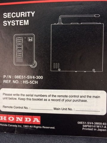 The security system is Honda installed , P/N: 08E51-SV4-300, REF No.: HS-5CH