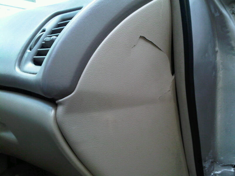 I have attached a pic of a cracked side-dash(?). Don't really know what it's called. Friend of mine cracked it accidentally. Now when I drive (windy or not), it's really noisy in the car. The wind comes in from there.