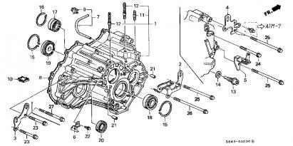 Redbull's picture is for a 4-cyl, not a V-6. You don't say that either in your post. The transmission on a V-6 car would be on the left, like you said.