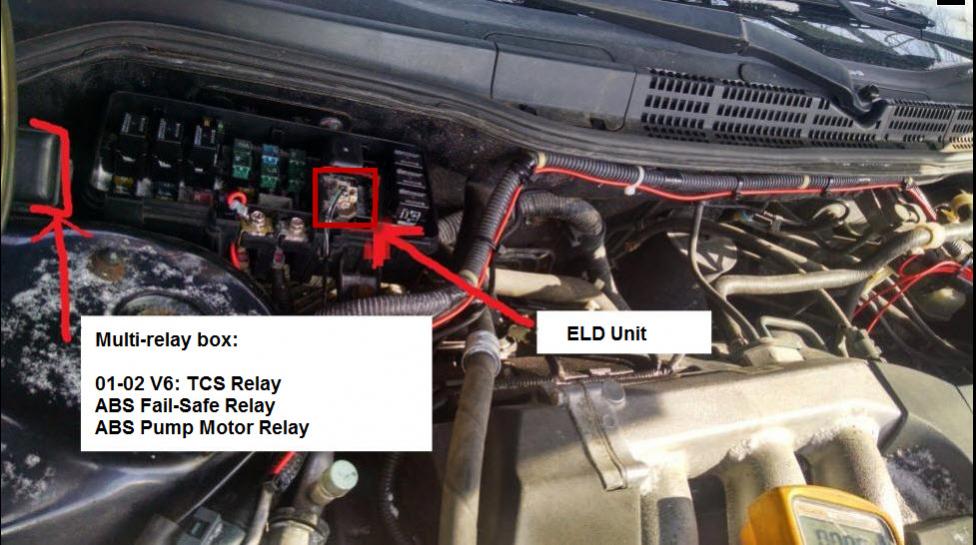 The Blk/Yel wire to the ELD unit should also have ~12 volts from driver's dash fuse no. 6, with the ignition in ON or START.