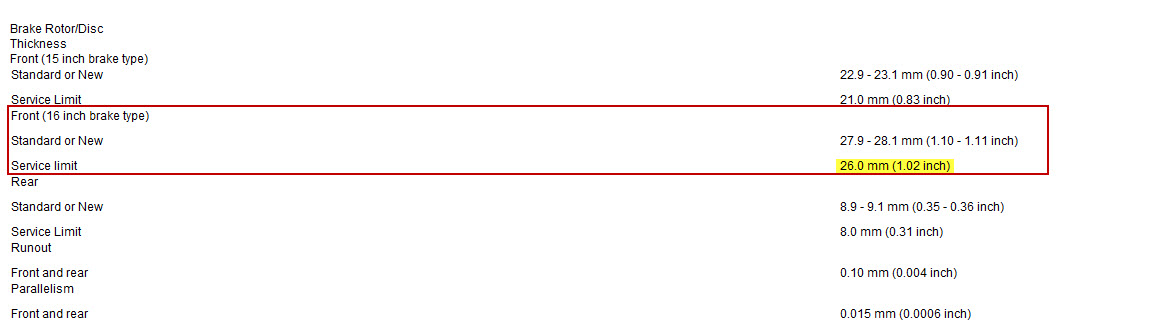 - For V6 with automatic transmission with 15 inch brake type, the front brake rotor is 11 inches.