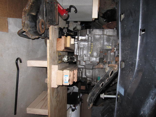 The only fancy tools I had were 2 jack stands and 2 of the crappy little jacks that come with hondas. Several concrete blocks and quite a bit of wood. Car runs well took about 4 weekends to get it out and in. Although I work slow. Supported the engine with concrete blocks then dropped the frame around it. Built a plywood platform on top of the frame to lower the transmission on to. I supported the transmission with blocks of wood and screw jack then to lower it. Worked ok not sure what the best way is it was slow to get it out that way but I was in control. I did have a transmission jack which was useless car was not high enough and the transmission is flat on the bottom which made at least the jack I had useless.