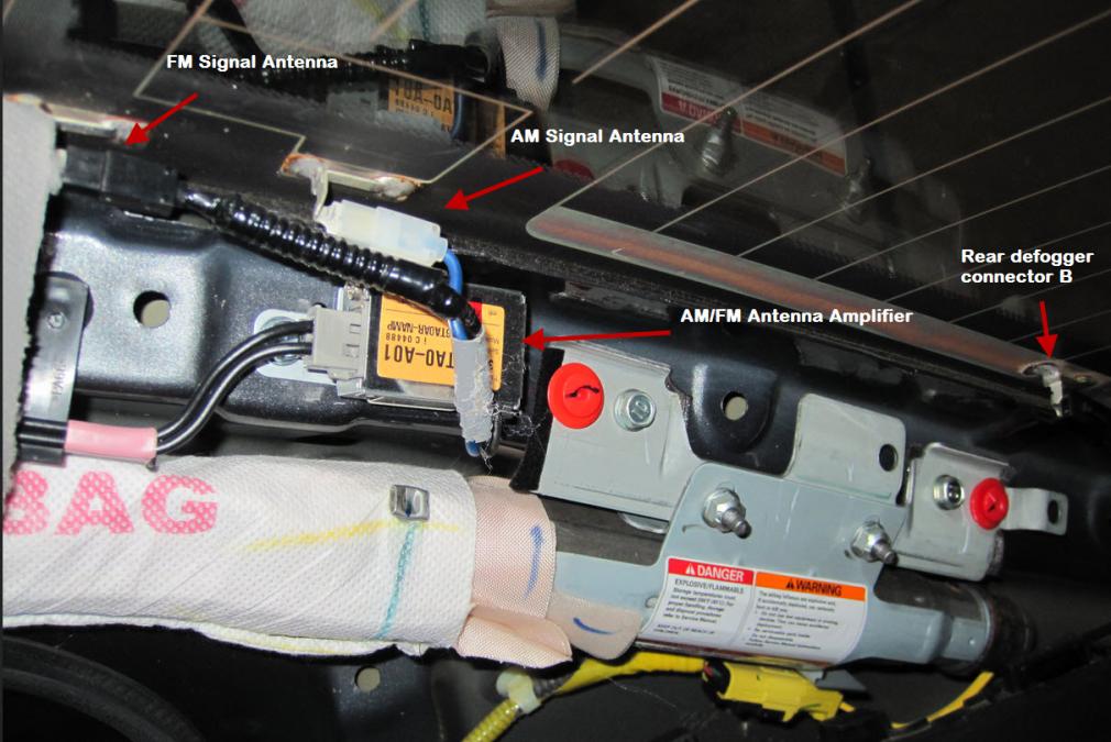 That's the antenna. The rear defogger lead is the one further down. The ground is not in your picture. My previous posts showed the connector and ground.