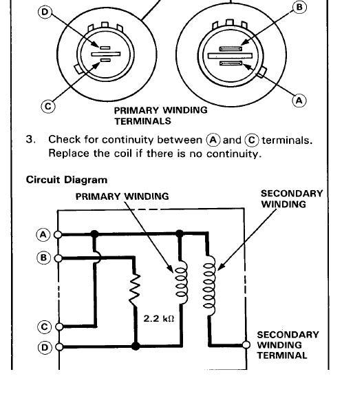 Ok, this is where I wish I could make/post pics better. Check the resistance between A and D on the coil..between A and the Coil Wire and then B and D.....so Yes still at either the coil or ICM....Inspect the coil for cracks or signs of sparks (underside between coil and body) EDIT: IMO-One of the two is getting hot/breaking down and giving out. I swear if you lived in central NC I'd have you come by, I have a spare coil and ICM (both types) in the garage...have you called any local "u pull it places" for prices?