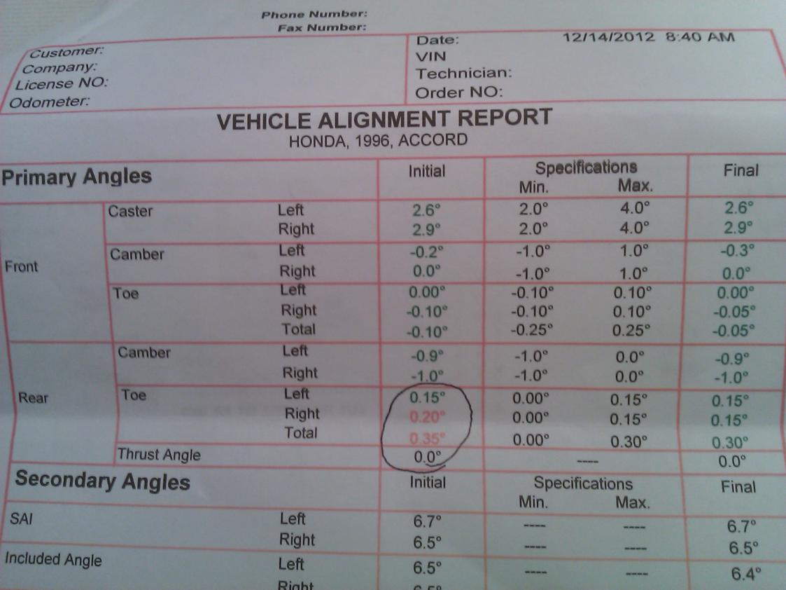 The rear toe should be about 0.08 degrees. They set your rear toe exactly at the max positive.