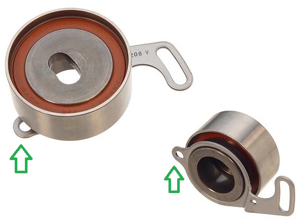 When you remove/install the timing belt, you can lift up on that arm, then put a bolt to keep tension off of the belt. Once the belt is in place, you remove that bolt, so the spring can keep proper tension on the belt.
