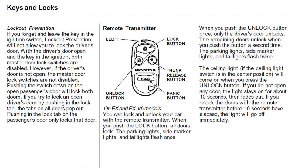 2. You can add the remote keyless entry for the LX. Not cheap, at HandA Accessories, $155.26 plus shipping (which is already discounted). Other Honda dealer sell it too. Installation instructions are here for your viewing pleasure.