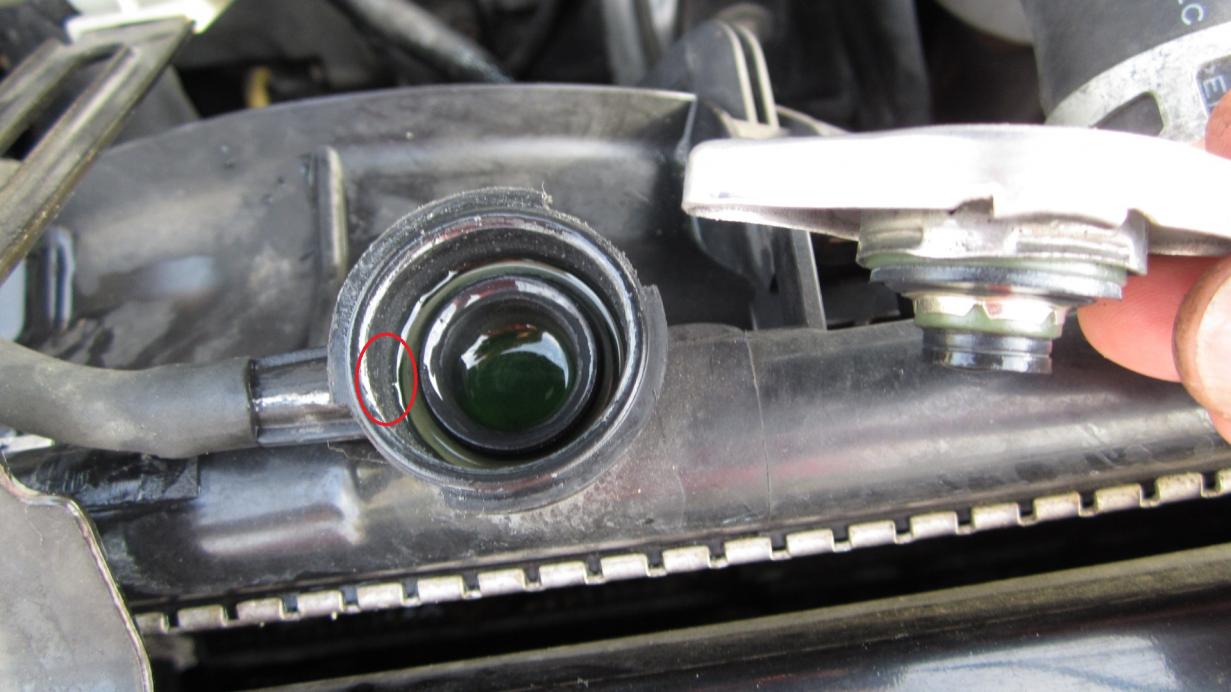 Can you pull the radiator cap off your car sometime and verify if you can see the hole there or if it's hidden?