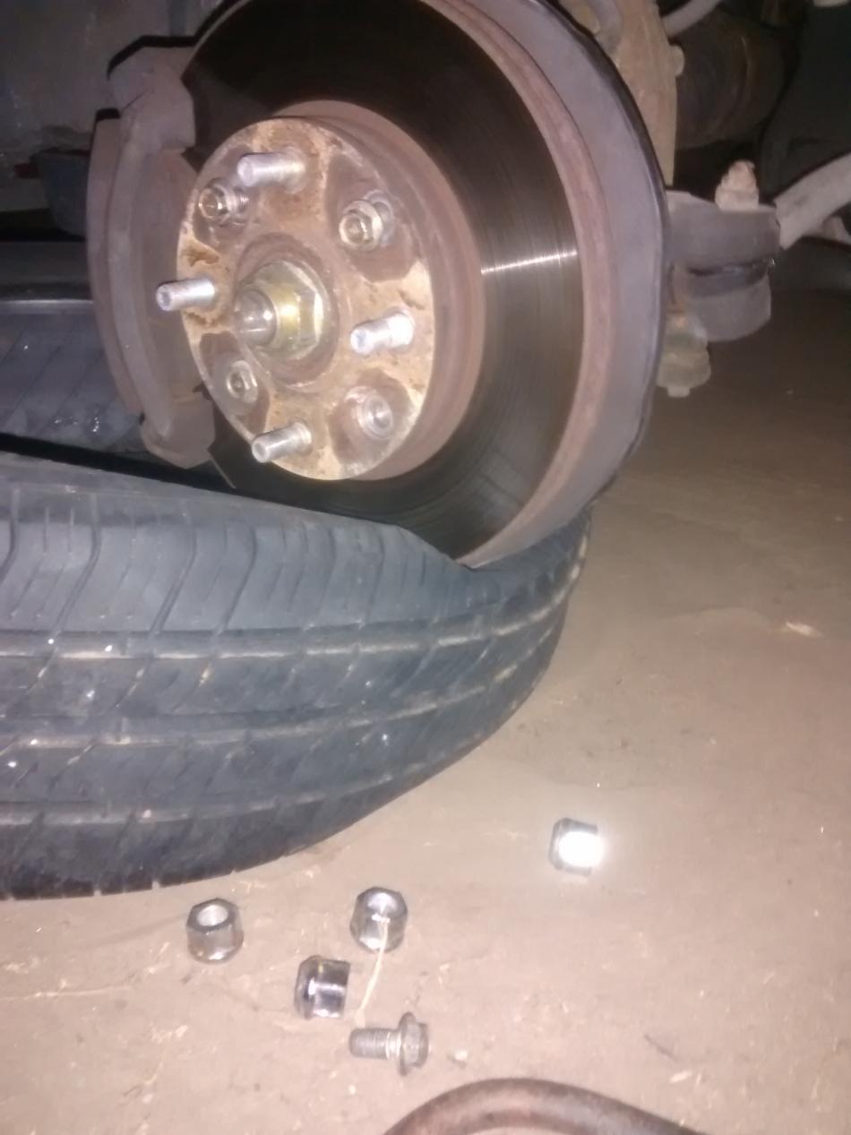 The lug nut studs, they broke two taking the lug nuts off in the first place but new ones were $2 so I wasn't too excited over that. These four I'm taling about go through the rotor .... I wouldn't imagine they would ever just loosen like this, you know?