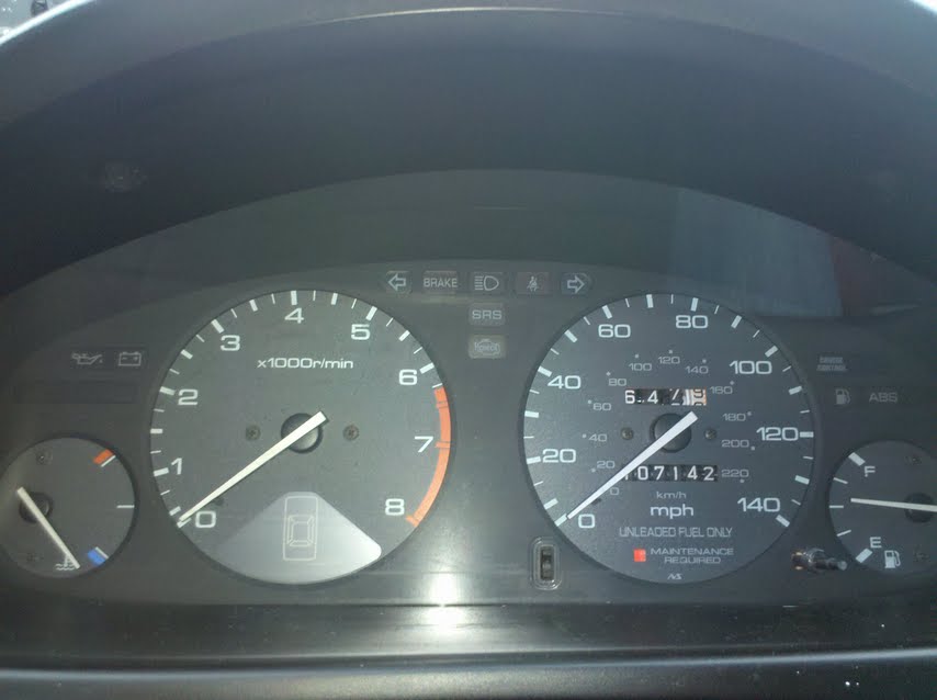 The red "maintenance required" indicator can be reset by pressing your key into the little slot on the cluster. Its just set to turn to red every 3000 miles or so to remind you to do an oil change.