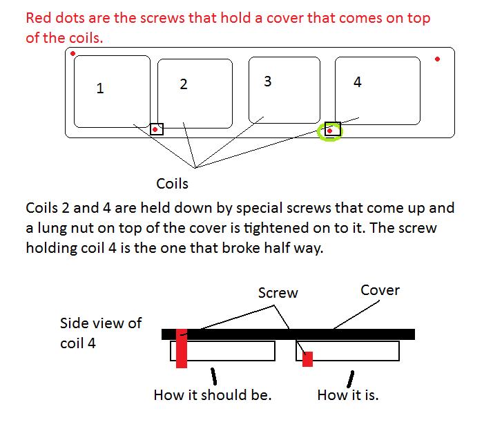 I just changed the plugs on my mom's 2003 Honda Accord EX and I managed to break a screw. Its a screw that's holding the coil pack in. It managed not to break underneath the coil or above the coil, but in the middle of the coil. So the coil can still wiggle but cannot be removed. I don't know what to do. It doesn't seem like it's hurting anything considering there's an extra cover above the coils that is screwed on to ensure they don't come up. Also, this screw is the one that goes through the top cover and a nut comes down on it to make sure the cover is on. Any advice? I got a picture attached of whats going on and how this screw sits. Thanks.