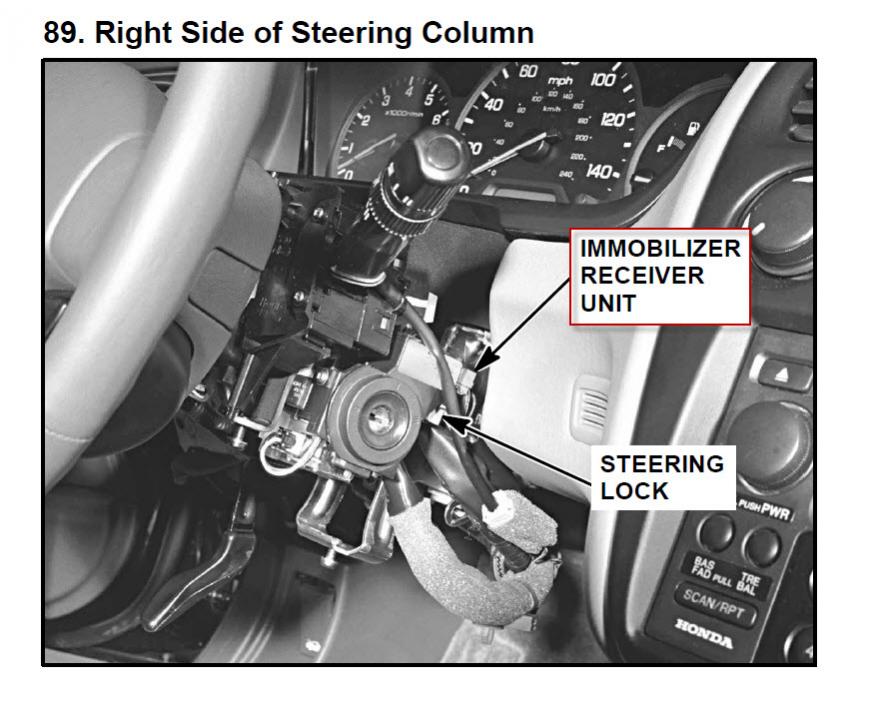 Looking at the Honda SL3 bypass module installation instructions and comparing to Honda circuit diagrams, the wires they are referring to are at the connector to the Immobilizer receiver unit.