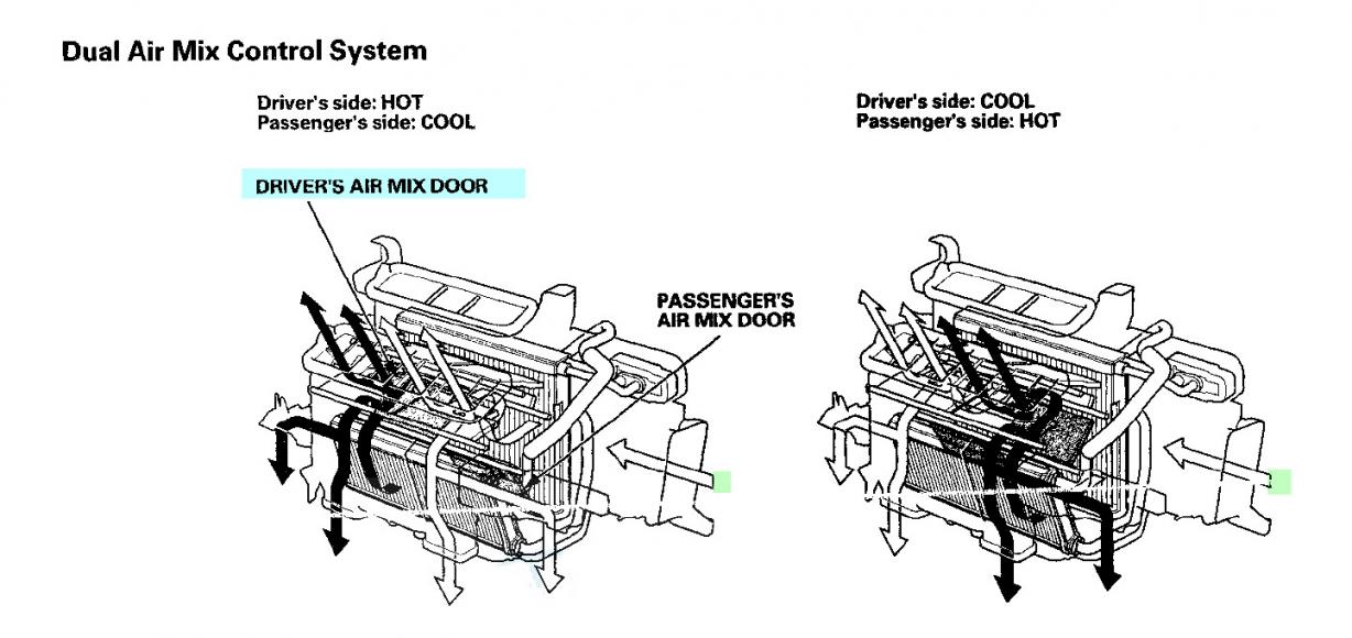 On models with manual A/C, without dual climate control, they only have one air mix control motor.