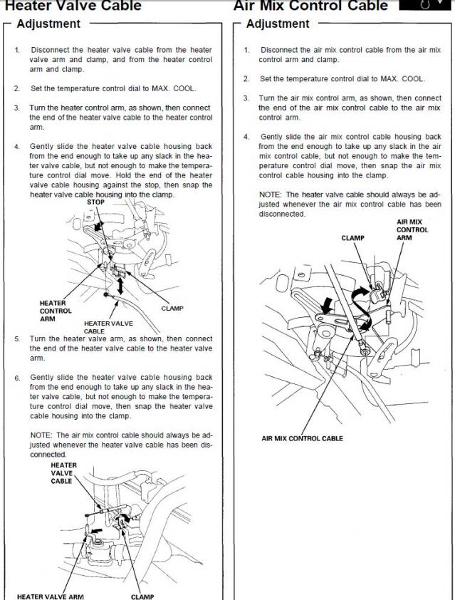 i was trying to fix it this morning, i try to adjust the air mix control, i believe the problem is the cable from the heater valve to the heater control arm is not long enough. so that's why you can not set the temp to max. i can turn it to max but it will bounce back to the position in your pictured. the valve i believe is at the max flow position. i was manually able to turn the heater **** to full/max heat position and the heat is there. it did put alot of tension on the heater valve arm puller the coolant tubes a bit. when it's at at position picture the blend door is not fully open so thats why the air is not hot, if the cable to the heater valve is like 3/4" longer i think it will turn to full. so did you had this resolved yet?