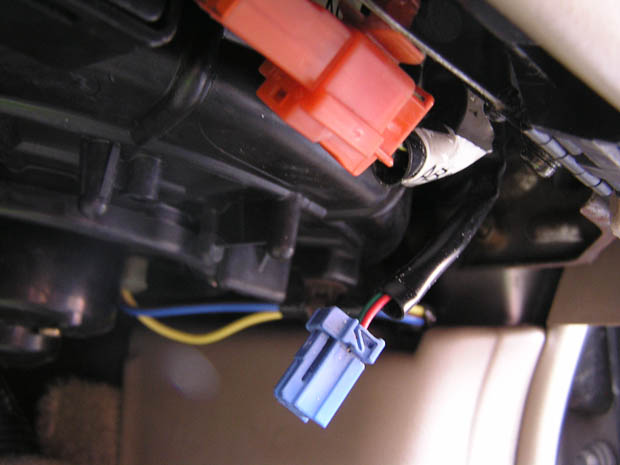 My car does not have 2 blue connectors plugged into another connector as shown in the link under the glove box. Unless the connector shown in the link was moved by the previous owner and left that one blue cable loose there is only one blue connector with 2 wires that was loose and free. No I did not plug a paper clip into the orange connector. I plugged it into the blue connector.