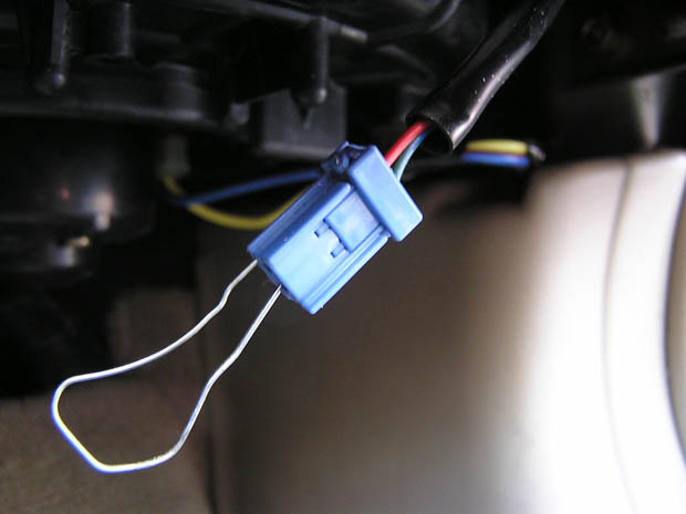 There is a blue connector with 2 wires but it was dangling free. I did as the link mentioned and inserted a paper clip into the socket and turned the key to the number II position.