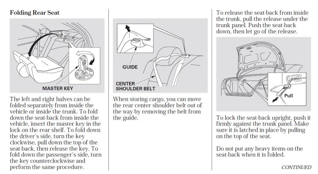 Just bought a beautiful 2004 Accord EX Coupe with V6, silver with black leather, 80K miles, well maintained from an elderly private owner. Drove it home for about 90 mile trip, and it rode & drove beautifully. Noticed a couple of little problems after getting it home. The passenger door lock will only operate manually, and the driver's seat back latch is frozen or stuck, so the seat back will not fold forward to allow entry into the back seat. Minor problems, but annoying and inconvenient to say the least. From what I've read in this forum, it sounds like failed door lock actuators are a common problem, so I will start there with that. Any suggestions on the seat back latch not operating? thanks....