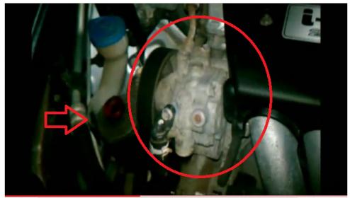 Is the noise coming from the PS pump or the alternator? I took a snapshot of your video. I circled the PS pump. Ignore the arrow, because I thought that this noise just showed up after you changed the coolant.