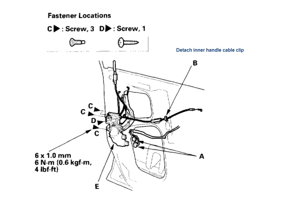 I have a 2004 Accord V6, and while trying to replace the front door speakers I accidently broke the door cable latches on both doors! ugh. and now I have to open the door from the outside which is a pain... Anyways I purchased both cables and tried to replace them myself but failed since I didnt go in there knowing what I was doing. I asked around a few shops and they want $100 to replace them both. Since Uncle Sam is the one signing my check I really cant afford that right now. lol I want to give it another try at it so if u have any advice on how to remove that cable it would be very much appreciated.. Thanx!