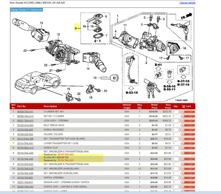 See this link for Honda TSB 09-099 regarding the revised transmitter. Note that the TSB is regarding only replacement of the remote transmitter unit inside the key blank/transmitter assembly. Since you need/want the whole key blank/transmitter assembly, the part number I shown above is currently the latest.