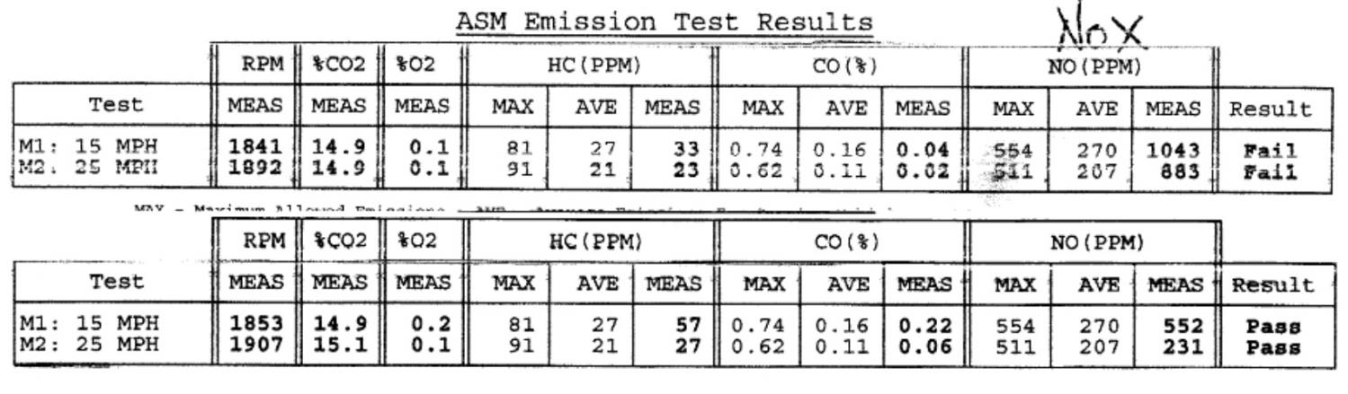 The EGR port cleaning allowed the car to pass the Calif. smog by greatly reducing the NOx numbers.
