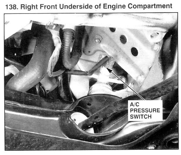 At the a/c pressure switch wire harness side connector, the red/wht wire should have 12V to ground (use a bare metal bolt as ground). The blu/red wire should have continuity to ground (use same bare metal bolt as ground). Make sure the key is in the II position when you do this test.