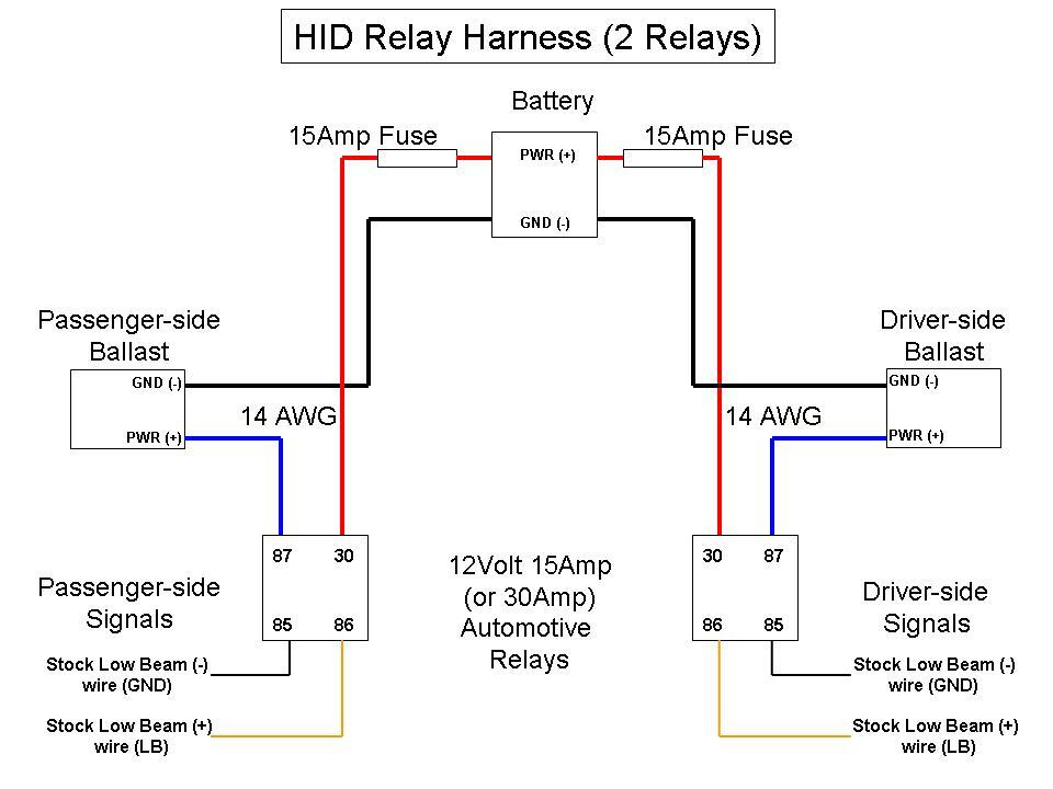 Ok, I have searched high and low and tried different wiring diagrams before posted. I have an HID kit on 99 Accord, I have wired it using 2 40 amp relays. I have Power wire going to fuse block which is connected to the battery, then I have Headlight power and ground going to the factory harness, Ballast power going to ballast. Ballast is grounded directly to car chassis. The HID's work great but when I hit my high beams the passenger side headlight and HB does not come on. goes out completely and drivers side works properly. I have look at all the wiring diagrams here is what i have tried: