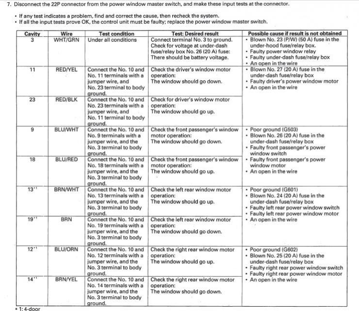 Thanks for your response. I'm beginning to believe that the problem is in the window locking switch. When I hit each respective window switch for the 3 passenger windows, I hear a click in the window switch on each individual door which leads me to believe that I'm getting power from the master switch to each door switch. Can you tell me how to either repair or disconnect the window locking switch? Since I don't use the window locking switch anyway, I'd rather just disconnect it if that's the quickest fix. Thanks again for your advice. msartell
