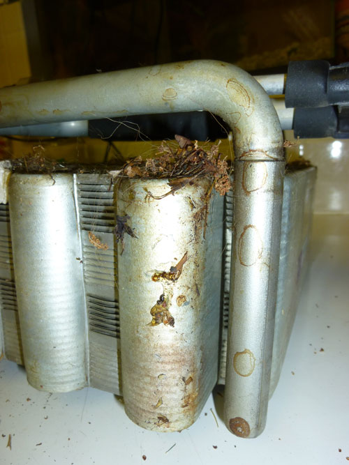So you're saying that I had some sort of animal living in my evaporator box and whatever it was ate the Styrofoam? Or are you saying the Styrofoam melted and the gooey stuff is what's left of it? Here's another photo a bit closer up. Could all that gooey stuff be what happened to the Styrofoam casing? This has really got me baffled. I don't know if I should clean up the current evap and reinstall, or just buy a new one.