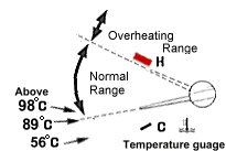 Redbull-1, thanks on your illustration on temp gauge, says that normal range after 98 C (208 F) up until it reached almost to point red zone. That seems scary because it could damage ones engine if one waits till close to red zone, right?